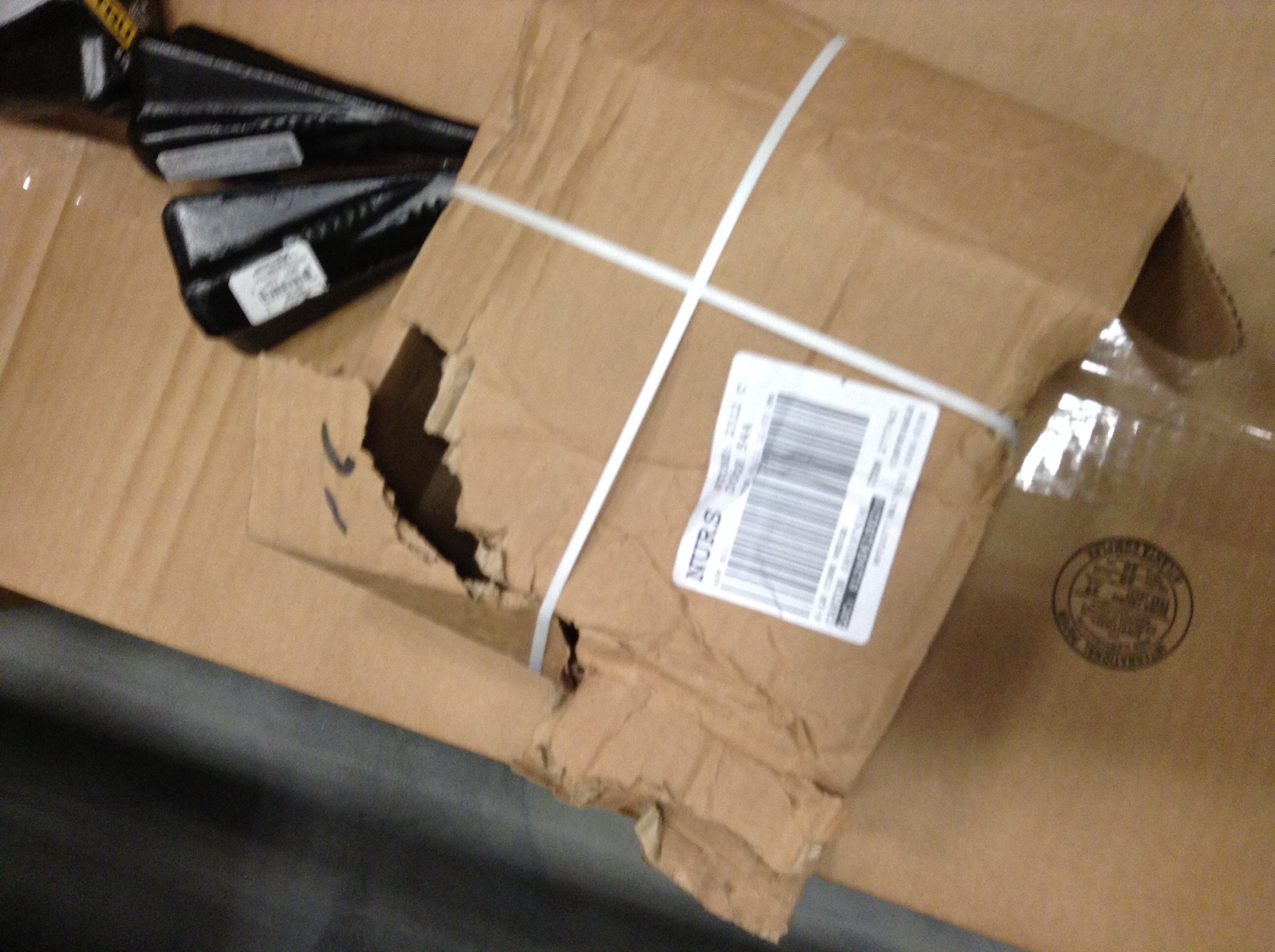 Another instance of corrugated box containment: the dreaded security issue. If the product has too much movement; the end result could look something like: